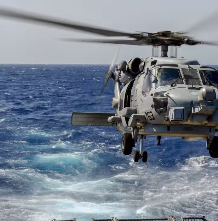 Two United States Navy aircraft — a Seahawk helicopter and a Super Hornet jet —…